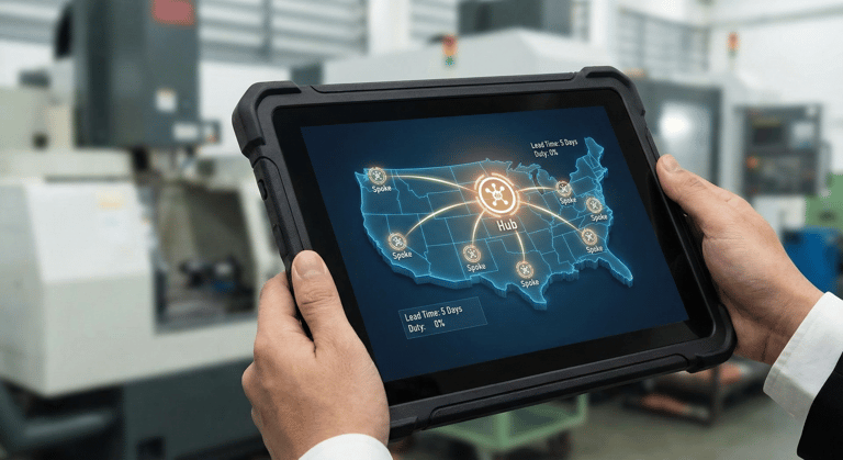 The traditional "produce anywhere, deliver everywhere" model has fractured. In its place, we see the rise of Regionalized Hub-and-Spoke Networks. In this model, the "Hub" consists of high-tech U.S. assembly plants, while the "Spokes" are Tier 2 and Tier 3 domestic suppliers located within a 500-mile radius.